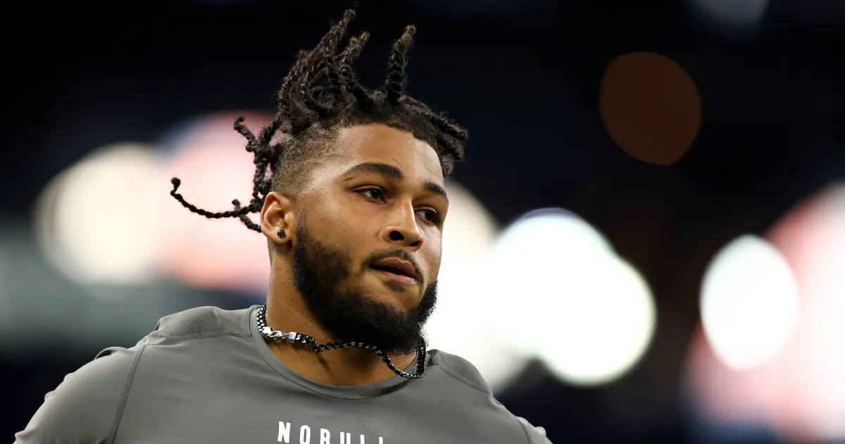 INDIANAPOLIS, INDIANA – 29. FEBRUAR: Marshawn Kneeland Michigan läuft den 40-Yard-Lauf während des NFL Combine im Lucas Oil Stadium am 29. Februar 2024 in Indianapolis, Indiana.