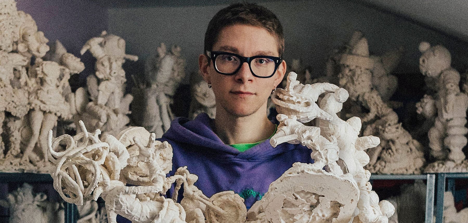 Es scheint, als ob Menschenberg… hat Card den Anstoß gegeben, sich als Kreativer weiterzuentwickeln Und ein vollwertiger Künstler. „Das A-Wort? Ich fühlte mich nicht würdig, es auszusprechen, bis ich meine eigenen Sachen gemacht hatte“, sagt er. „Ich bin jetzt an einem Punkt, an dem ich (auch wenn ich das A-Wort nicht ganz sagen kann) mich selbst als Künstler betrachte.“ Ein Teil dieser Änderung ist umständlicher Natur. Card arbeitet jetzt eng mit seinem Freund zusammen, Jason Zhangein Studioleiter, der sich um die Geschäfte kümmert und bei Bedarf sogar als Kreativdirektor einspringt. Dank Zhangs Rationalisierung hat Card mehr Zeit zum Malen und Bildhauern gefunden, während er gleichzeitig seinem Job nachgeht. „Wir leben und atmen unsere Arbeit“, sagt er. „Es gibt kein Entrinnen und ich liebe es.“